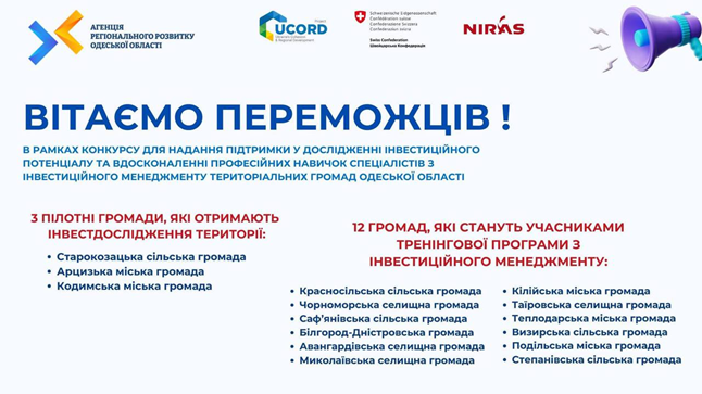 Загалом у конкурсі взяли участь 38 громад Одещини, серед яких обрано 15-ть переможців.